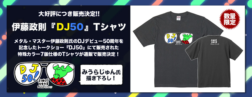 - 伊藤政則『DJ50 Tシャツ』みうらじゅん氏書き下ろし!数量限定で取り扱い中!!